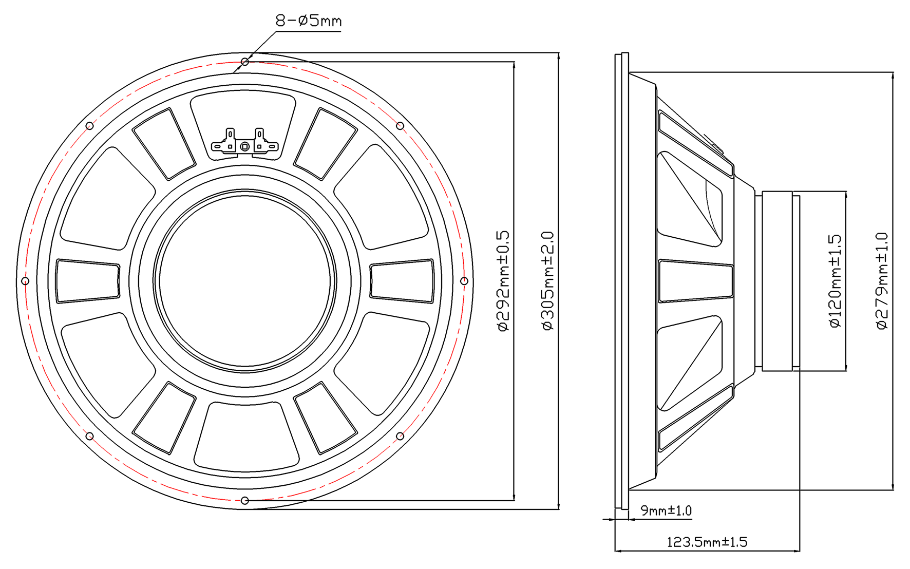 | Force factor(BL) | 8.1 N/A |